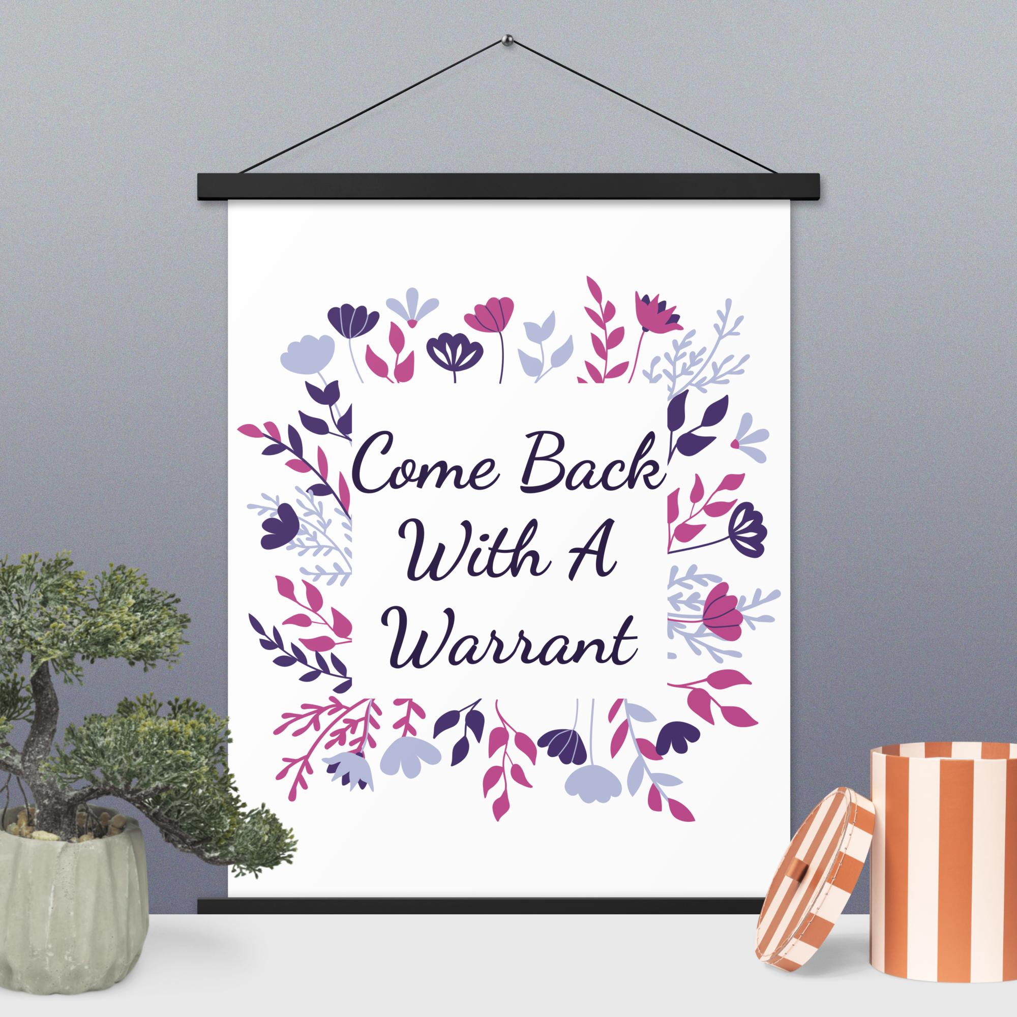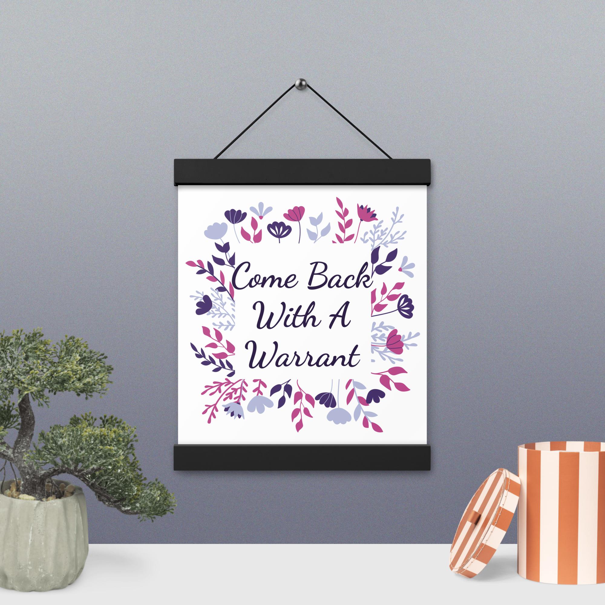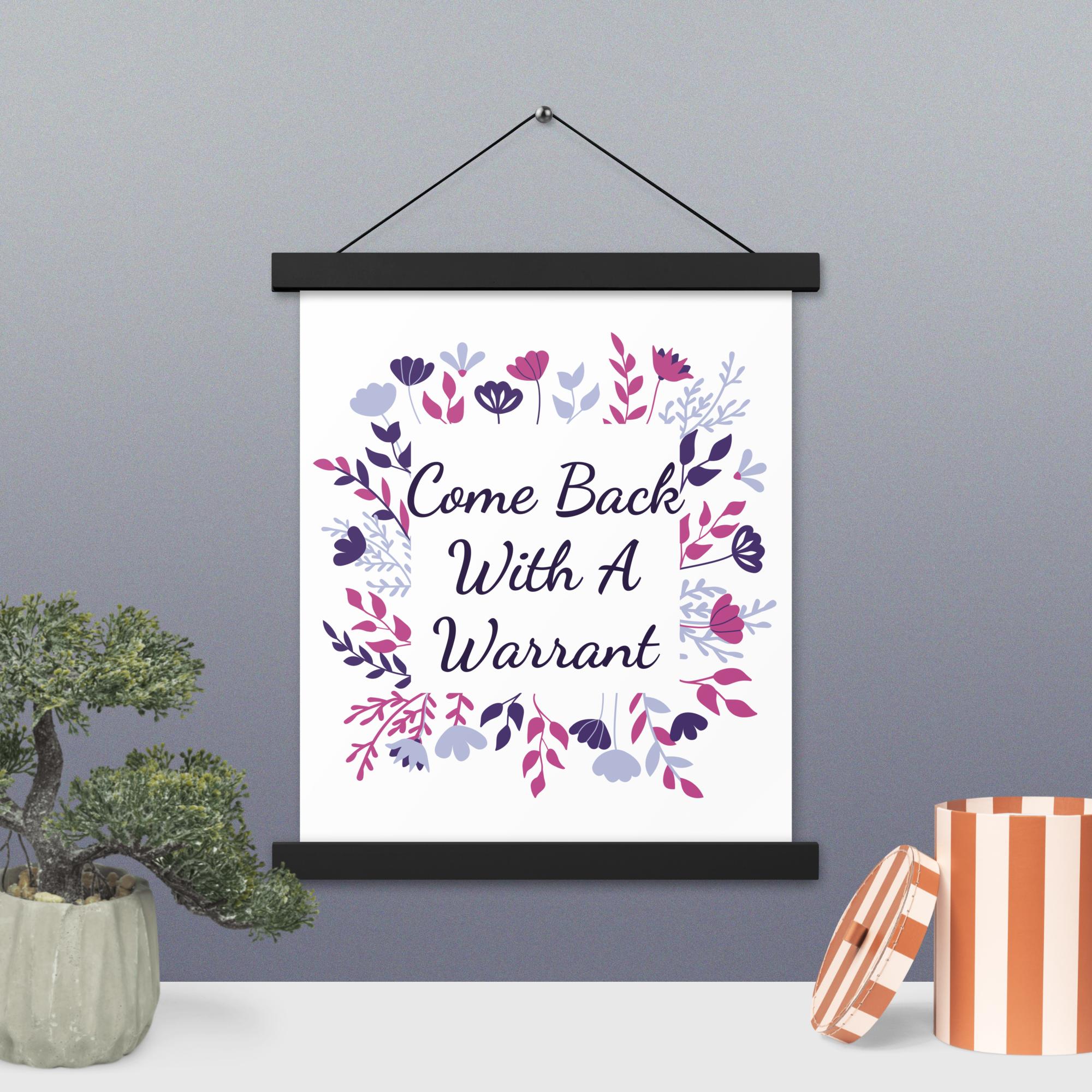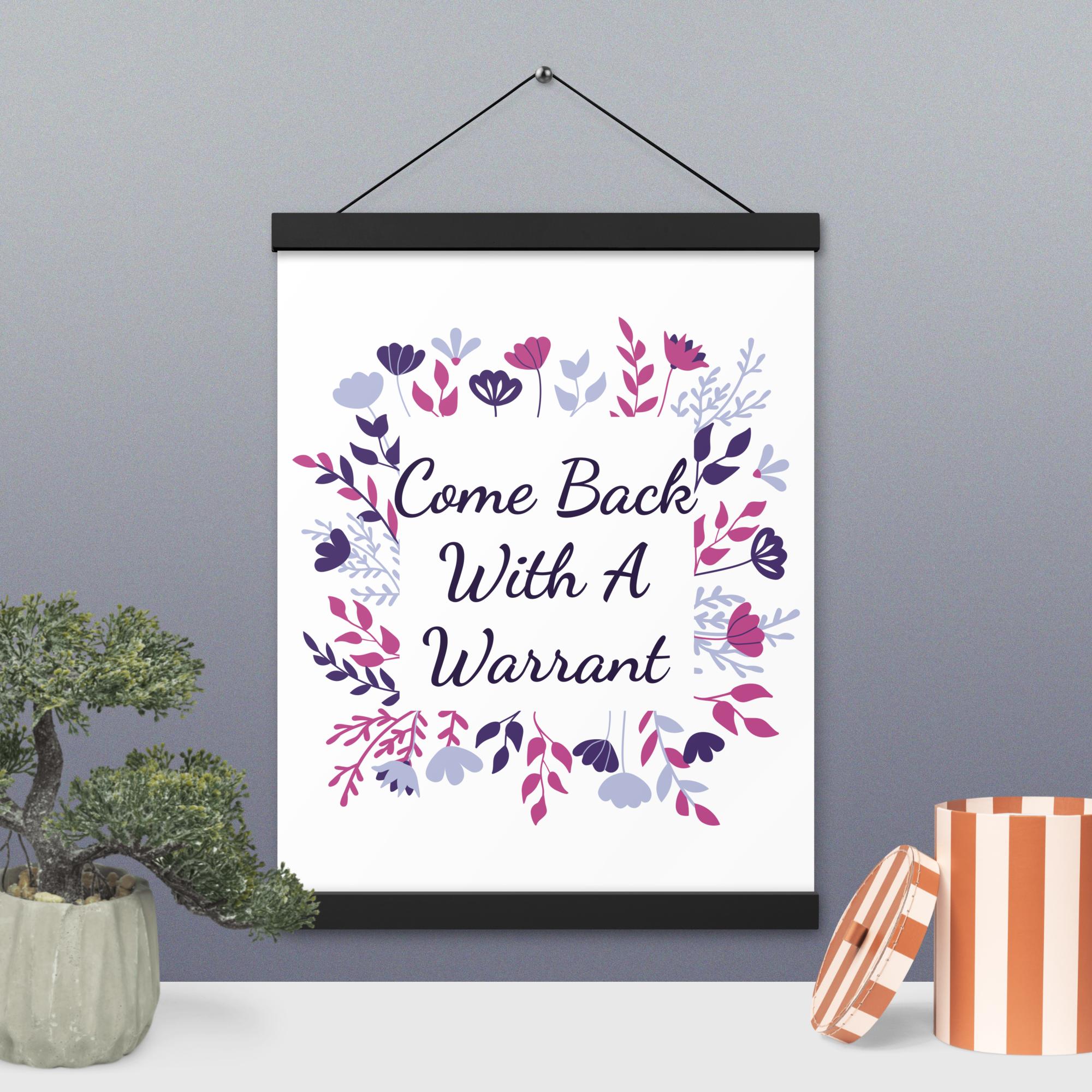 This matte poster comes with a lightweight wooden hanger and will fit any interior decor. Use it as a statement piece or to create more depth on your wall. Above all, don’t let them in without a warrant.
